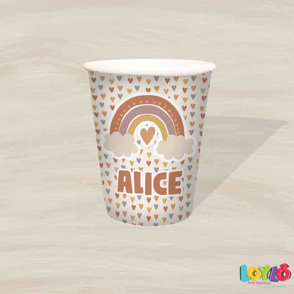 10 Copos personalizados no tema Arco íris Boho