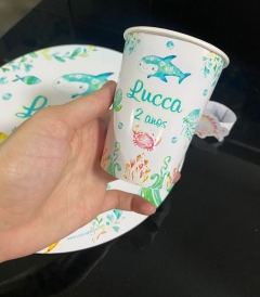 Copo  personalizado no tema da festa. Digite o tema no campo de observações de arte abaixo