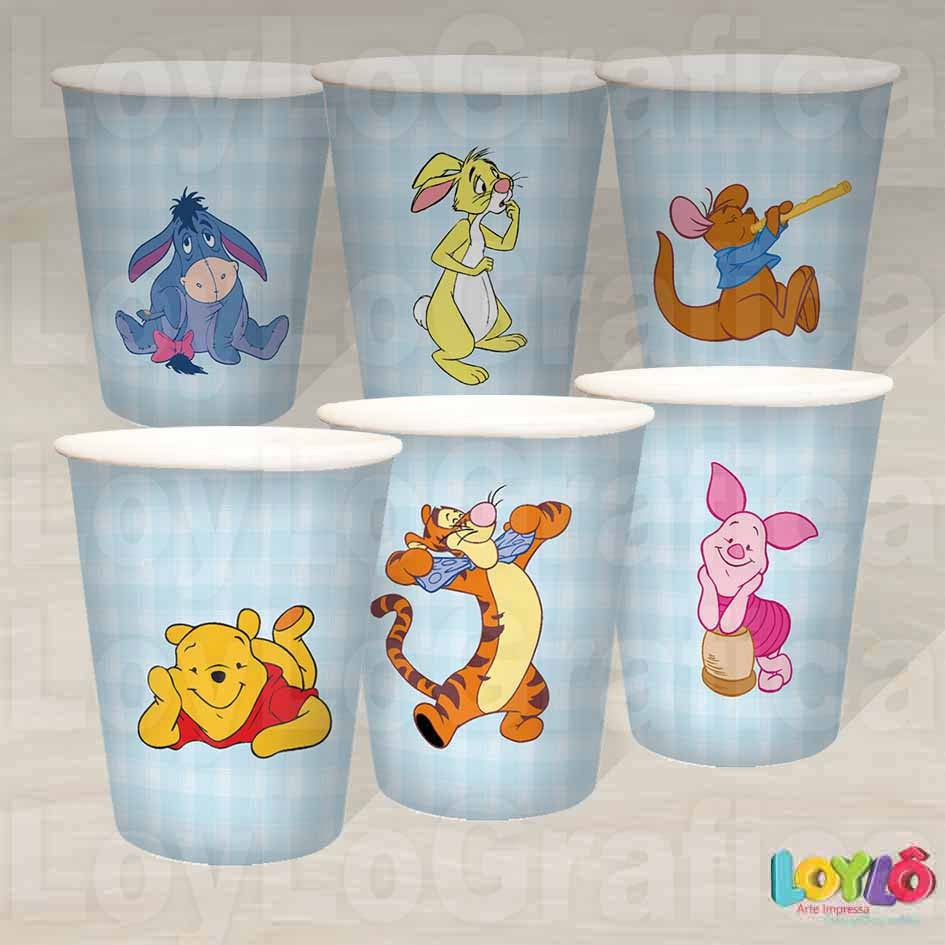 Copo personalizado no tema Ursinho Poohv rosa ou azul xadrez