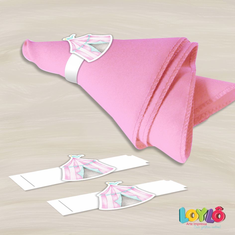 Kit com 10 Porta guardanapo personalizado no tema Circo aquarela rosa para decorar mesa posta de festa de aniversário infantil