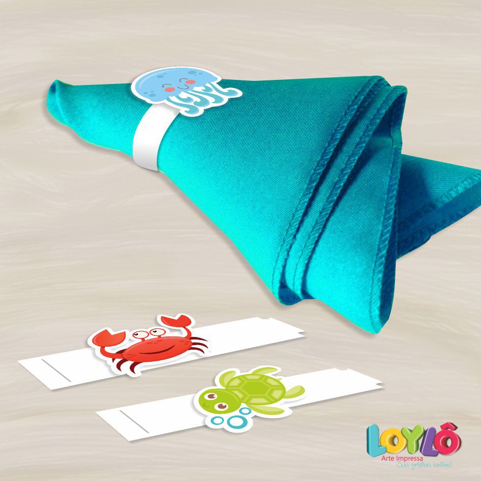 Kit com 10 Porta guardanapo personalizado no tema Fundo do mar para decorar mesa posta de festa de aniversário infantil