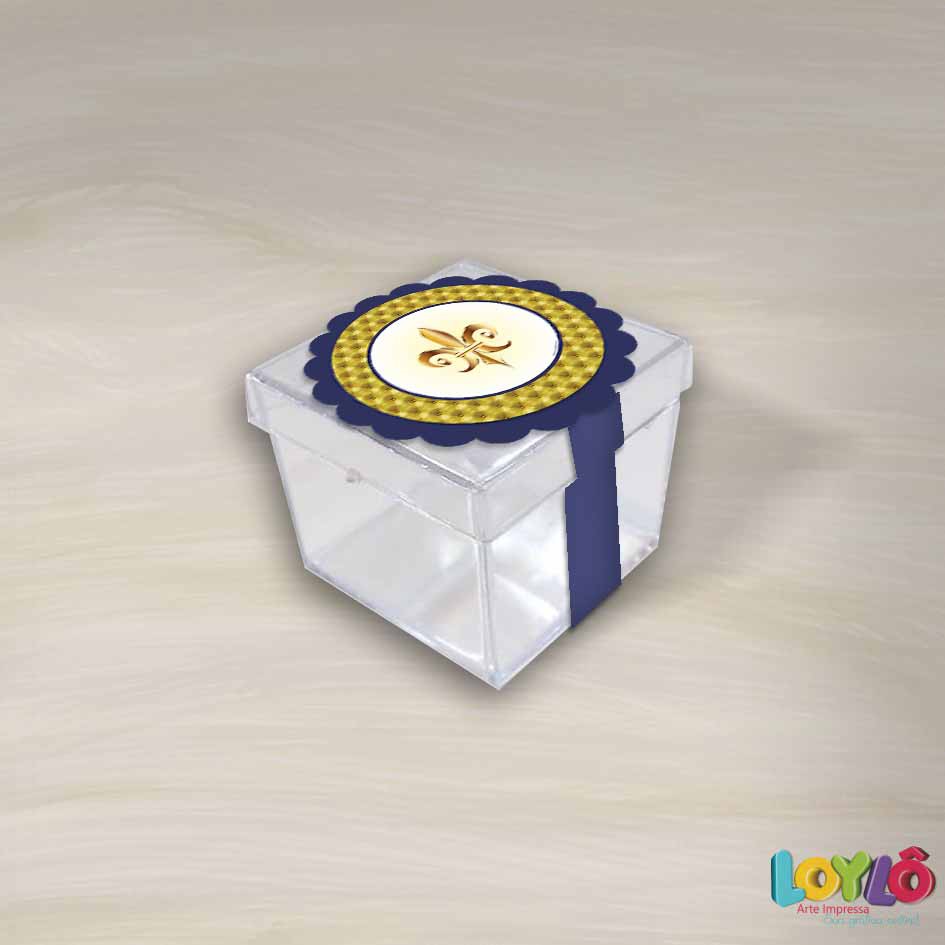 Caixa lembrancinha para festa Reinado Azul Escuro e dourado