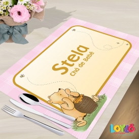 Jogo americano personalizado no tema Ursinho Pooh Retrô Rosa