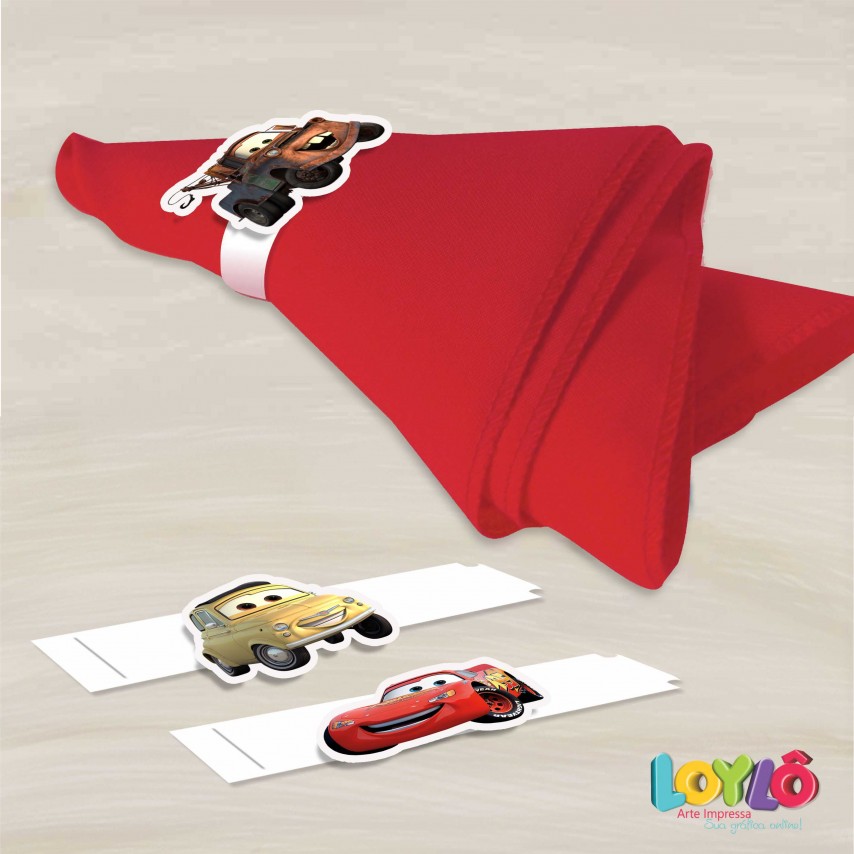 Kit com 10 Porta guardanapo personalizado no tema Carros Disney para decorar mesa posta de festa de aniversário infantil