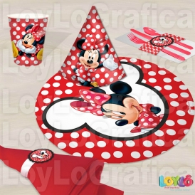 Sousplat e copo, porta talher, porta guardanapo e chapeu personalizado no tema MICKEY, MINNIE E TURMA