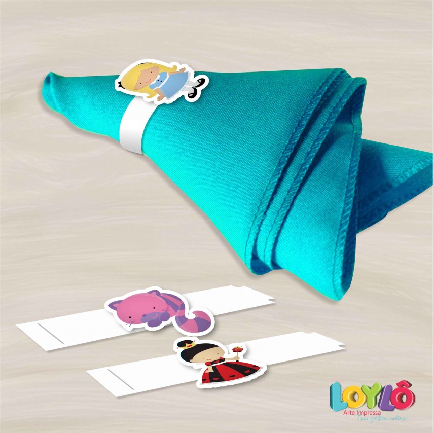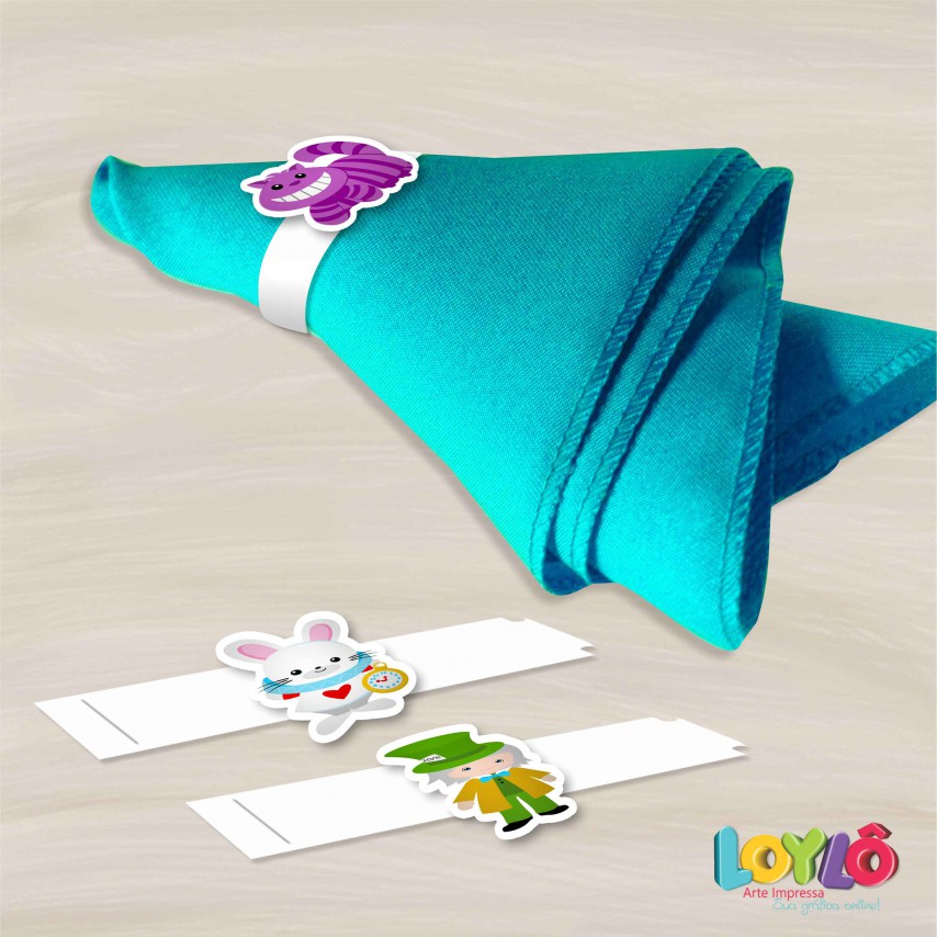 Porta guardanapo prendedor de tecido personalizado para decorar mesa posta festa infantil de aniversário no tema Alice no país das Maravilhas