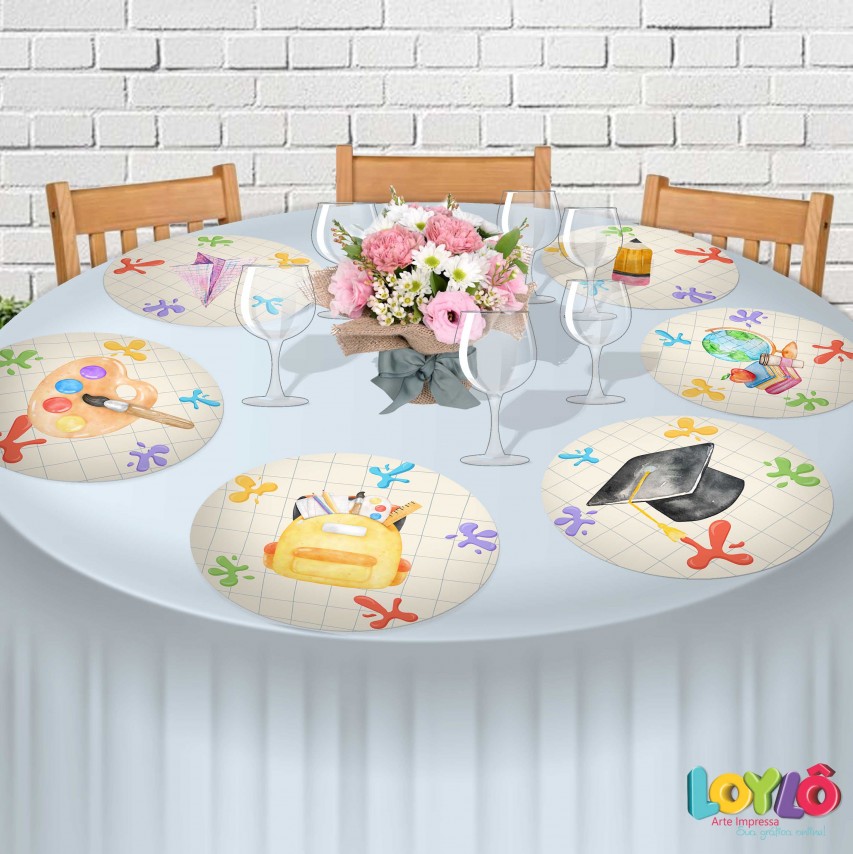 Não precisa de base, apenas o nosso sousplat deixa sua mesa posta linda e dura até o fim da festa