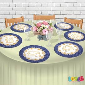 Não precisa de base, apenas o nosso sousplat deixa sua mesa posta linda e dura até o fim da festa