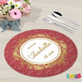 Não precisa de base, apenas o nosso sousplat deixa sua mesa posta linda e dura até o fim da festa