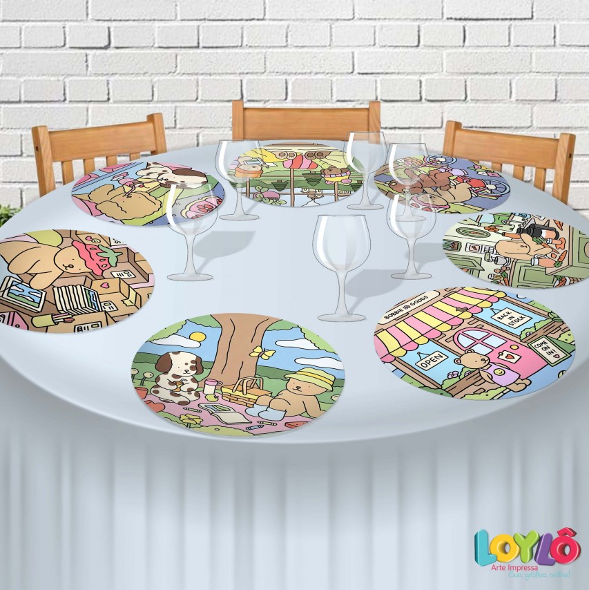 Não precisa de base, apenas o nosso sousplat deixa sua mesa posta linda e dura até o fim da festa