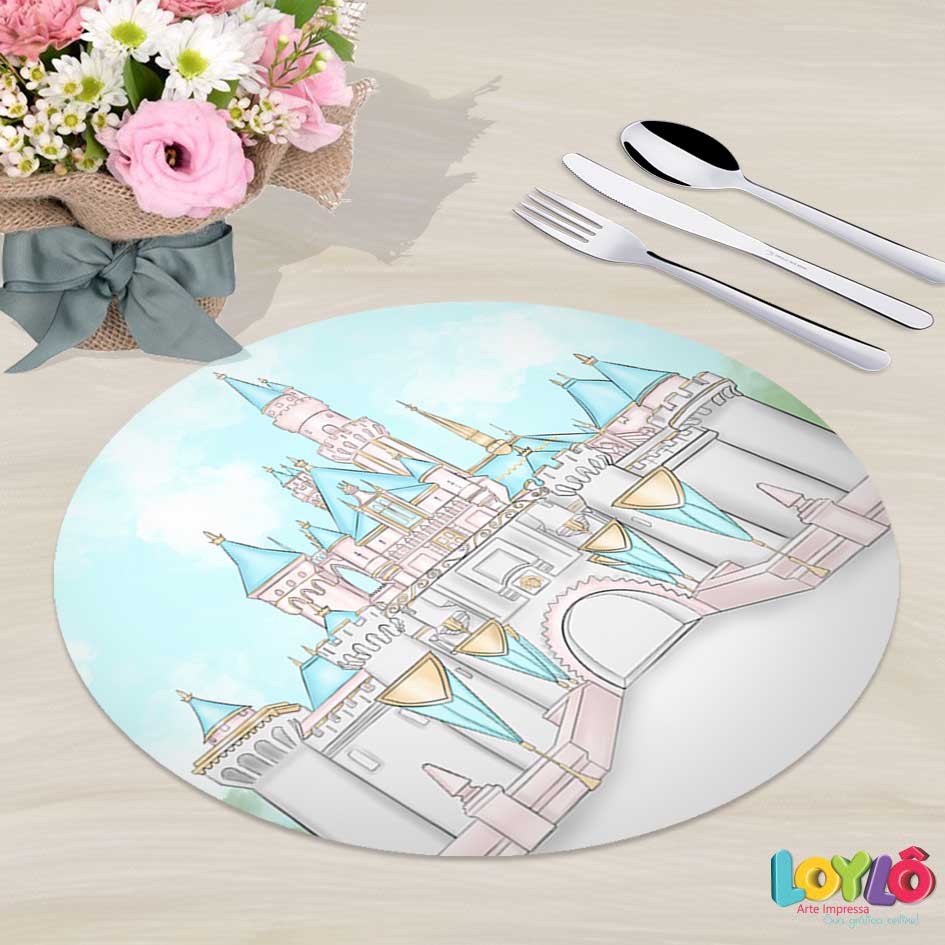 Sousplat personalizado no tema Disneylandia castelo Mickey Minnie aquarela