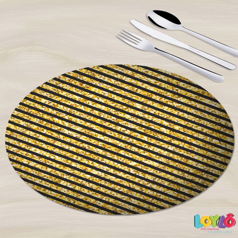 Sousplat personalizado na estampa listras dourado e preto para aniversário adulto, casamento, formatura, bodas, confraternizações, ceia de natal, batizado, eventos em geral