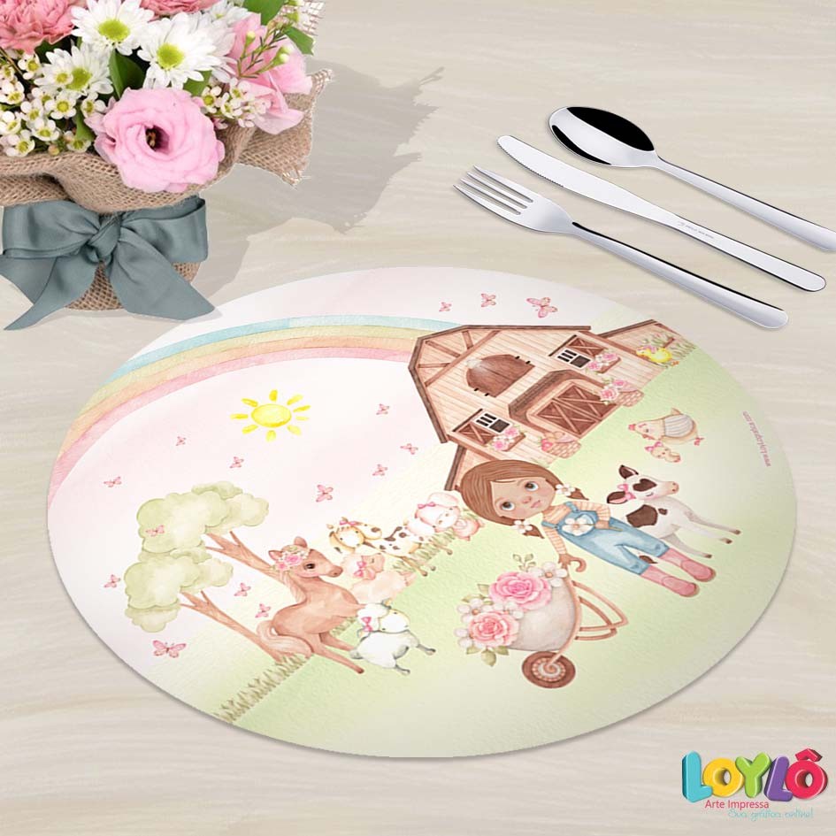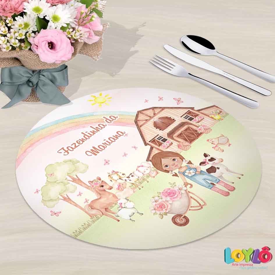 Sousplat personalizado no tema Fazendinha Aquarela Menina Negra