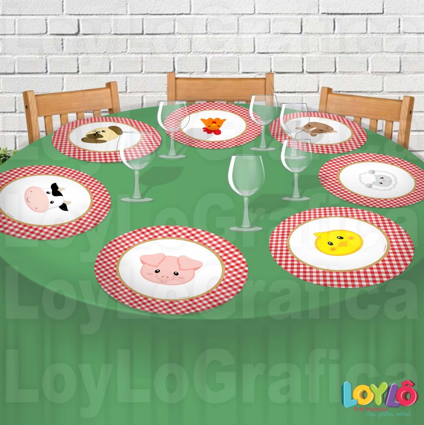Sousplat personalizado no tema Fazendinha azul xadrez animais