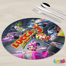 Sousplat Mickey e turma sobre rodas com nome personalizado