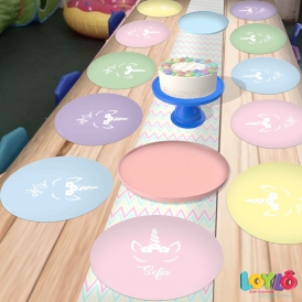 Sousplat personalizado no tema Unicornio candy colors cores pastéis