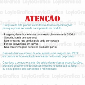 Prazo de produção: 10 dias úteis ( Arte ficará disponível para aprovação dentro desse prazo. Caso o comprador não aprove a arte em até 24h, o prazo pausa até a aprovação do comprador )