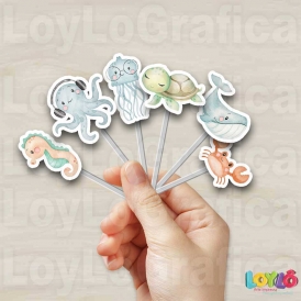 Topper personalizado no tema Fundo do Mar Aquarela para decorar festa de aniversário infantil